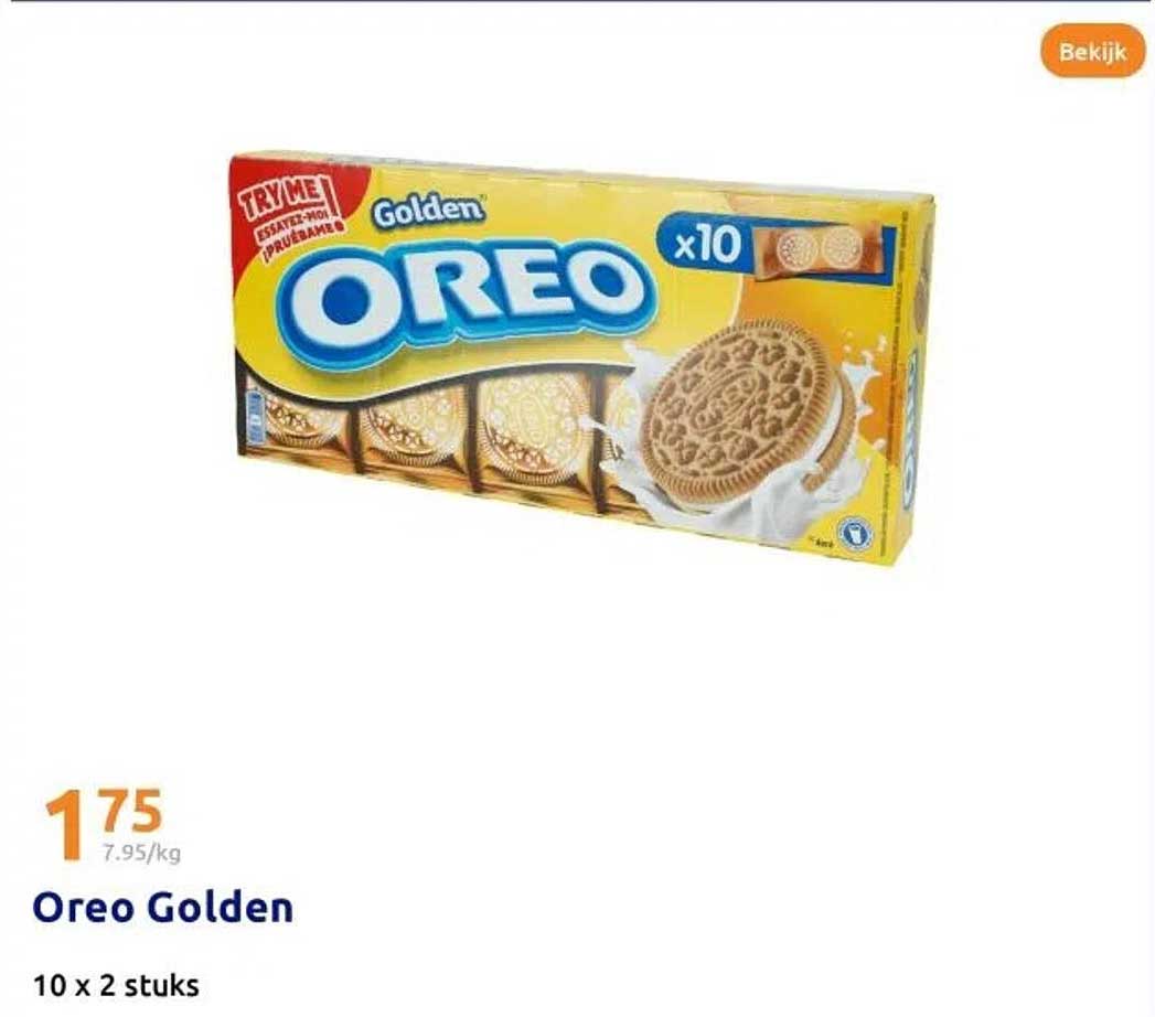 Ontdek de geweldige Oreo Golden aanbieding in de nieuwste Action folder. Naast deze aanbieding vind je nog veel meer aantrekkelijke kortingen. Je kunt de Oreo Golden eenvoudig online bestellen via de Action website of kopen in een winkel bij jou in de buurt.