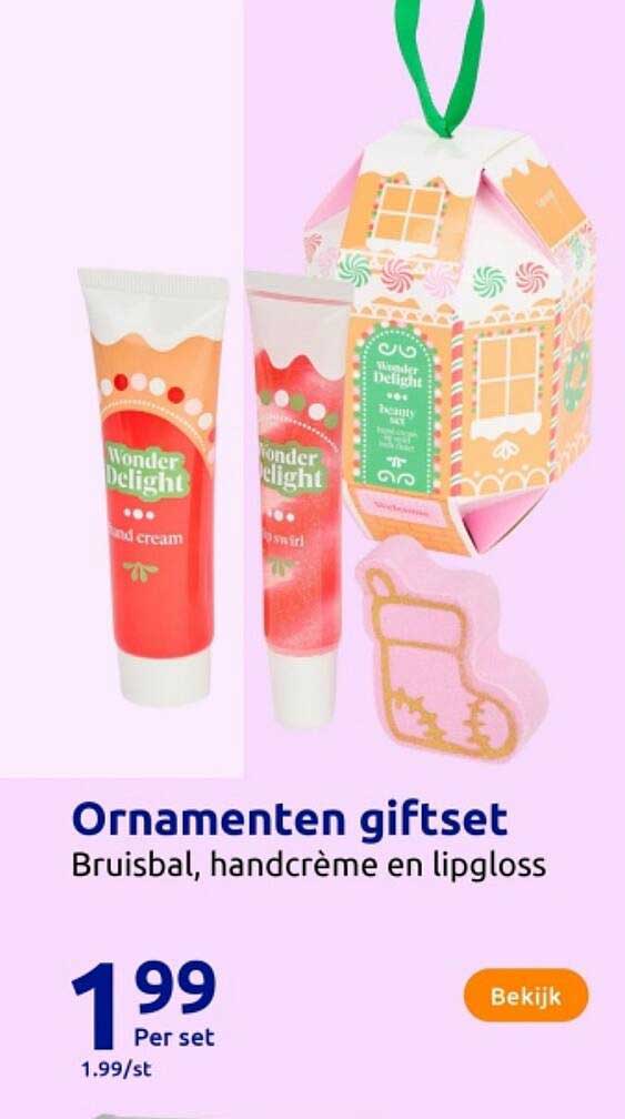Bekijk nu de Ornamenten giftset aanbieding in de Action folder. Deze aanbieding is geldig van 06-11-2024 tot en met 12-11-2024.