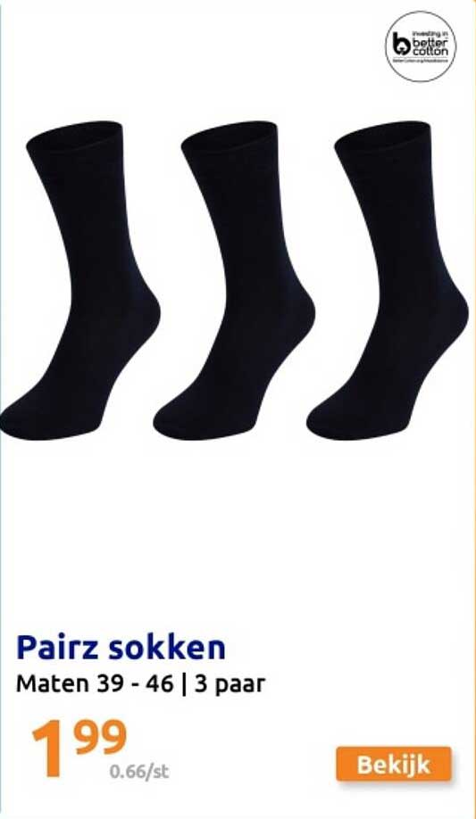 Bekijk de Pairz Sokken aanbieding bij Action! Deze fantastische aanbieding is nu beschikbaar in de nieuwste Action folder. Profiteer van deze kans en bespaar flink op je aankoop.