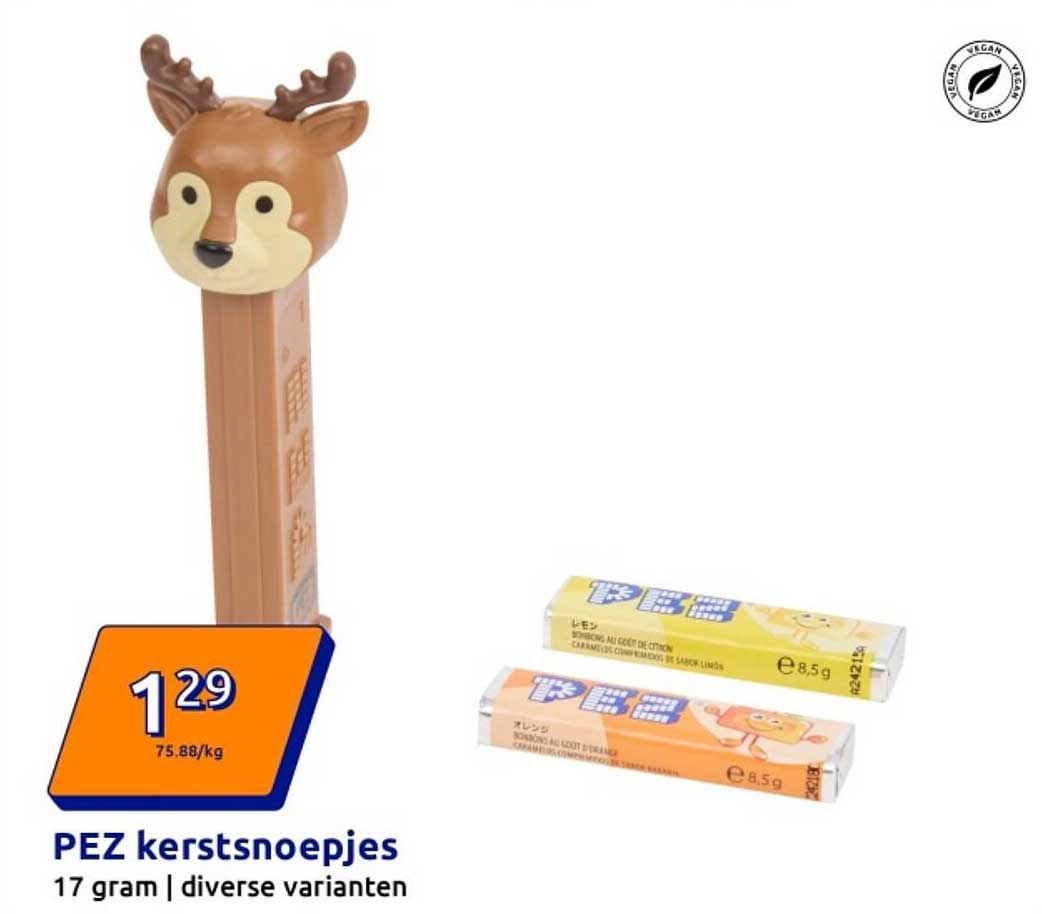 Bekijk nu de PEZ kerst snoepjes aanbieding in de Action folder. Deze aanbieding is geldig van 29-10-2025 tot en met 04-11-2025.