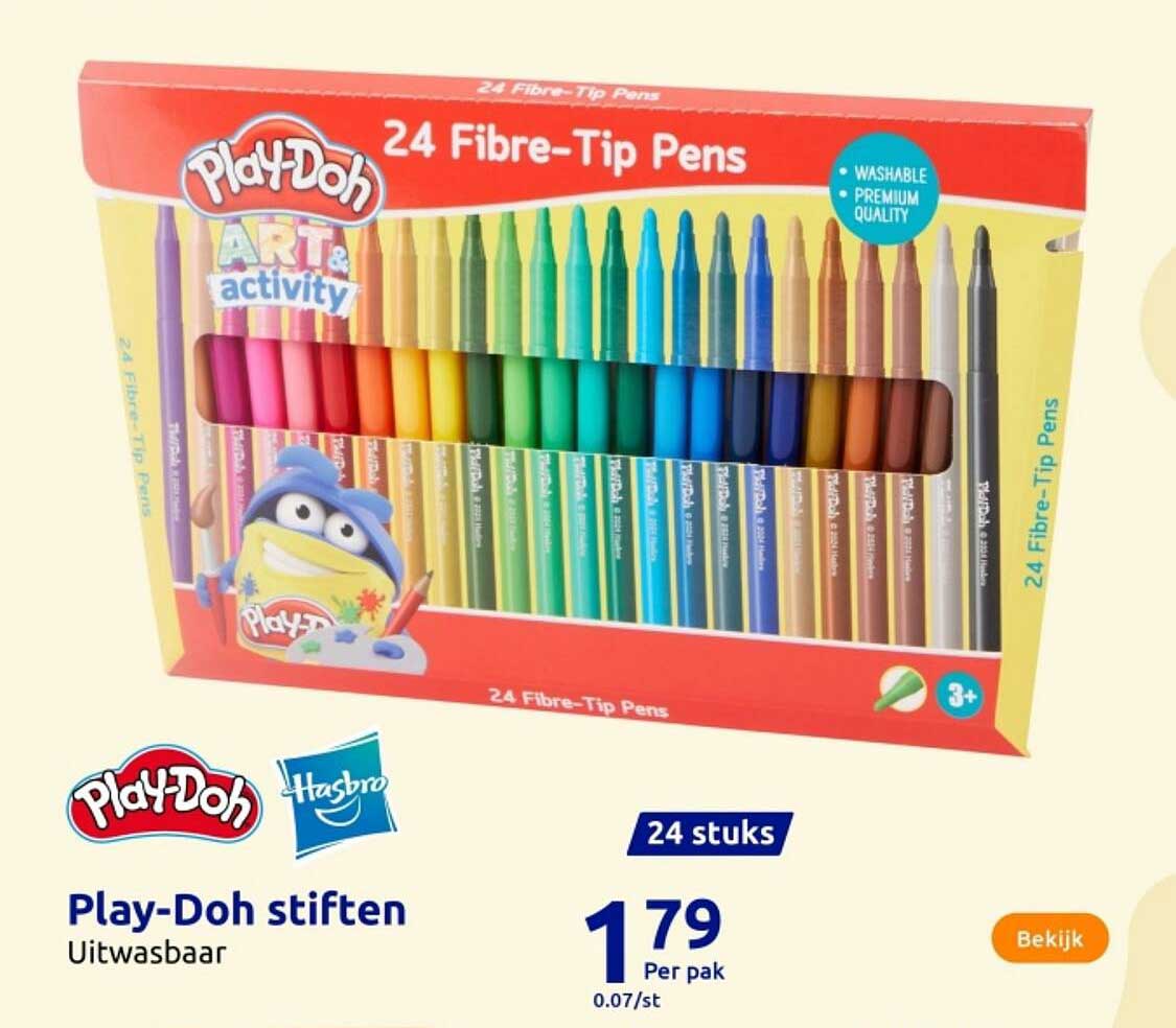 Ontdek de geweldige Play-Doh Stiften aanbieding in de nieuwste Action folder. Naast deze aanbieding vind je nog veel meer aantrekkelijke kortingen. Je kunt de Play-Doh Stiften eenvoudig online bestellen via de Action website of kopen in een winkel bij jou in de buurt.