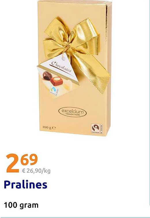 Voor slechts €2,69 per doosje is dit een geweldige deal, vergeleken met de normale prijs van €3,99. Dat betekent dat u nu kunt genieten van deze heerlijke pralines voor een fractie van de prijs! Waarom zou u nog wachten?