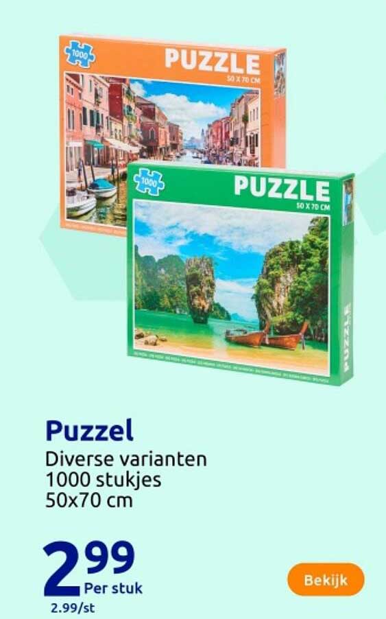 Ontdek de geweldige Puzzel aanbieding in de nieuwste Action folder. Naast deze aanbieding vind je nog veel meer aantrekkelijke kortingen. Je kunt de Puzzel eenvoudig online bestellen via de Action website of kopen in een winkel bij jou in de buurt.