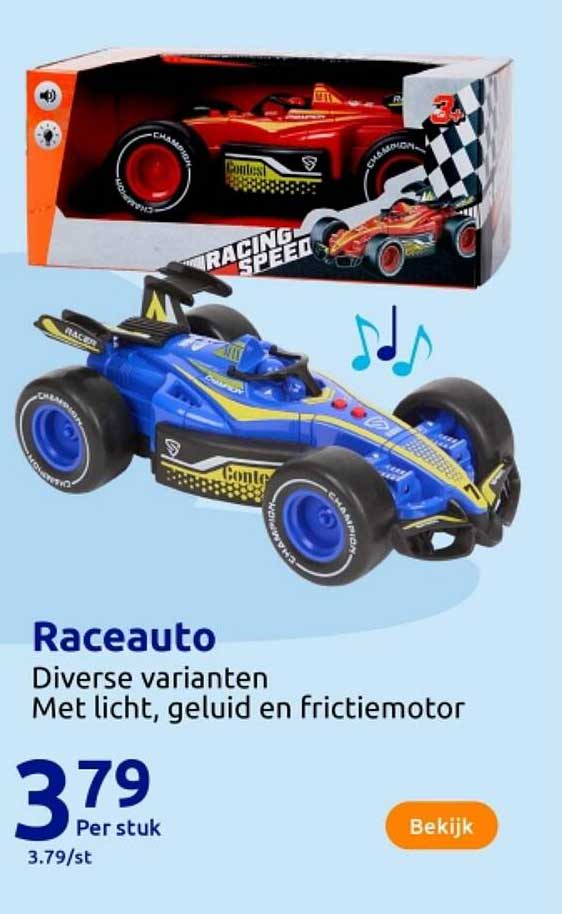 Bekijk de Raceauto aanbieding bij Action! Deze fantastische aanbieding is nu beschikbaar in de nieuwste Action folder. Profiteer van deze kans en bespaar flink op je aankoop.