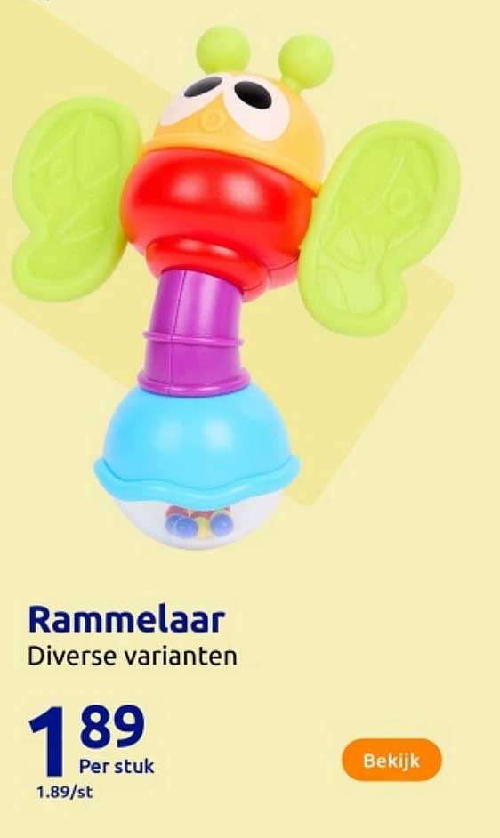 Ontdek de geweldige Rammelaar aanbieding in de nieuwste Action folder. Naast deze aanbieding vind je nog veel meer aantrekkelijke kortingen. Je kunt de Rammelaar eenvoudig online bestellen via de Action website of kopen in een winkel bij jou in de buurt.