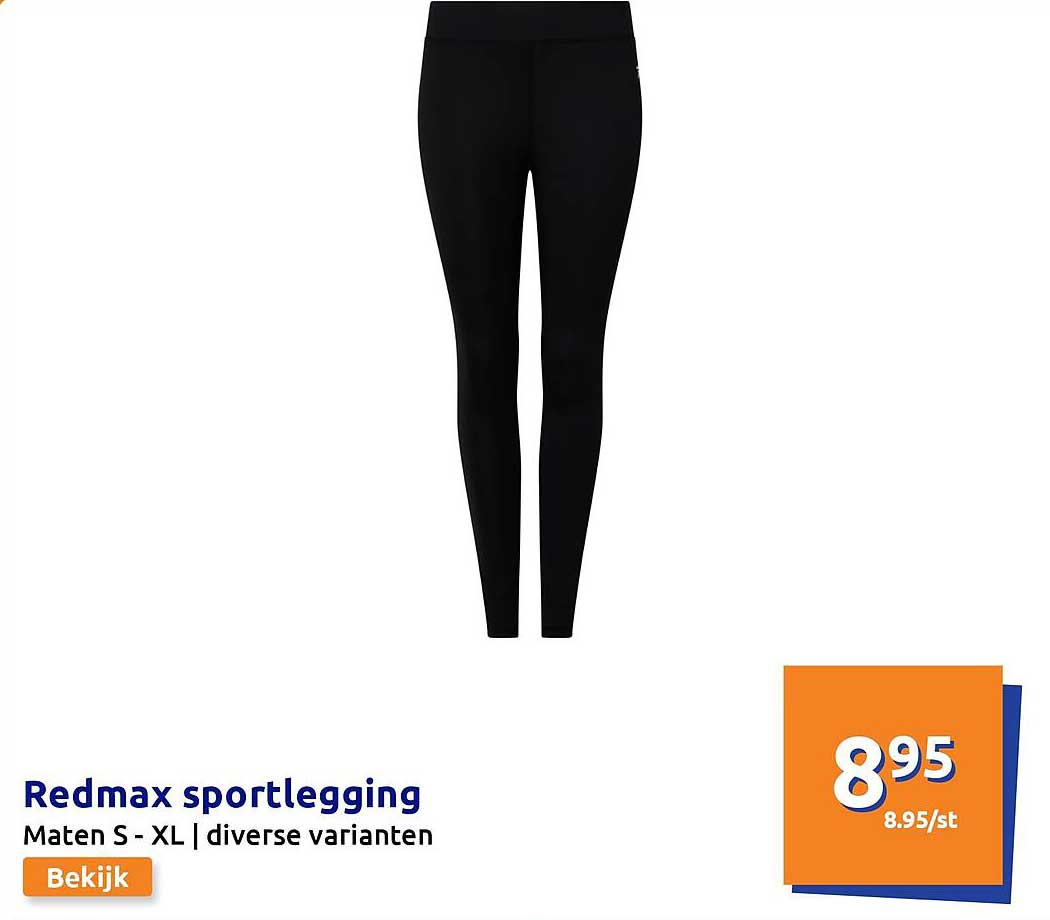 Bekijk de Redmax Sportlegging aanbieding bij Action! Deze fantastische aanbieding is nu beschikbaar in de nieuwste Action folder. Profiteer van deze kans en bespaar flink op je aankoop.