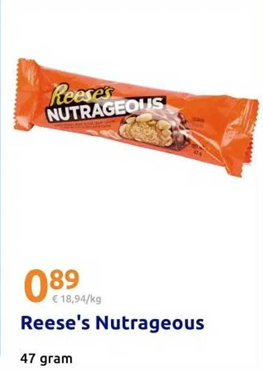Bekijk nu de Reese's Nutrageous aanbieding in de Action folder. Deze aanbieding is geldig van 24-09-2025 tot en met 24-09-2025.