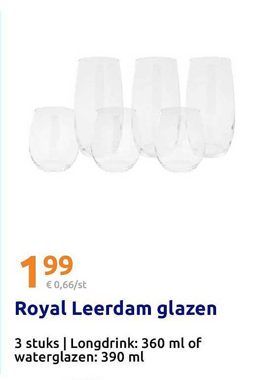 Bekijk nu de Royal Leerdam glazen aanbieding in de Action folder. Deze aanbieding is geldig van 09-07-2025 tot en met 15-07-2025.