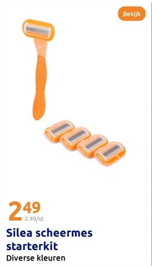 Bekijk de Silea Scheermes Starterkit aanbieding bij Action! Deze fantastische aanbieding is nu beschikbaar in de nieuwste Action folder. Profiteer van deze kans en bespaar flink op je aankoop.