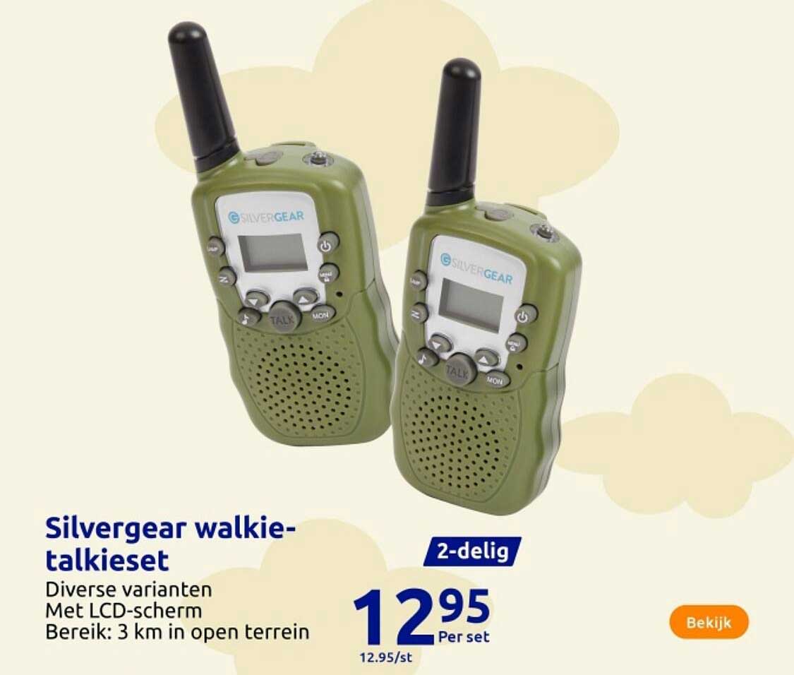 Bekijk de Silvergear Walkie-Talkieset aanbieding bij Action! Deze fantastische aanbieding is nu beschikbaar in de nieuwste Action folder. Profiteer van deze kans en bespaar flink op je aankoop.