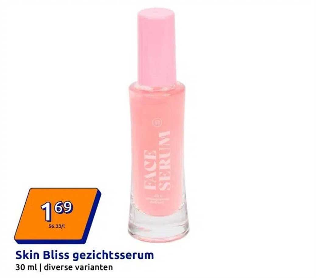 Bij Action is het Skin Bliss gezichtsserum nu verkrijgbaar voor slechts €1,69! Dat is een fantastische deal in vergelijking met andere merken die vaak meer kosten voor vergelijkbare formules. Mis deze kans niet om jouw huid te verwennen zonder de bank te breken!