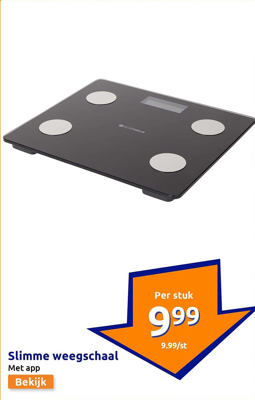 Ontdek de geweldige Slimme Weegschaal aanbieding in de nieuwste Action folder. Naast deze aanbieding vind je nog veel meer aantrekkelijke kortingen. Je kunt de Slimme Weegschaal eenvoudig online bestellen via de Action website of kopen in een winkel bij jou in de buurt.