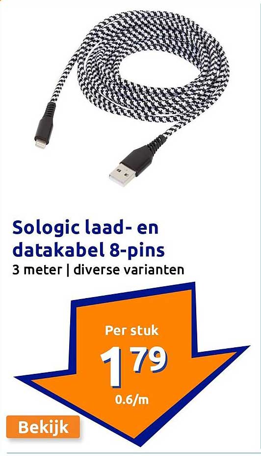 Sologic Laad- En Datakabel 8-Pins aanbieding bij Action