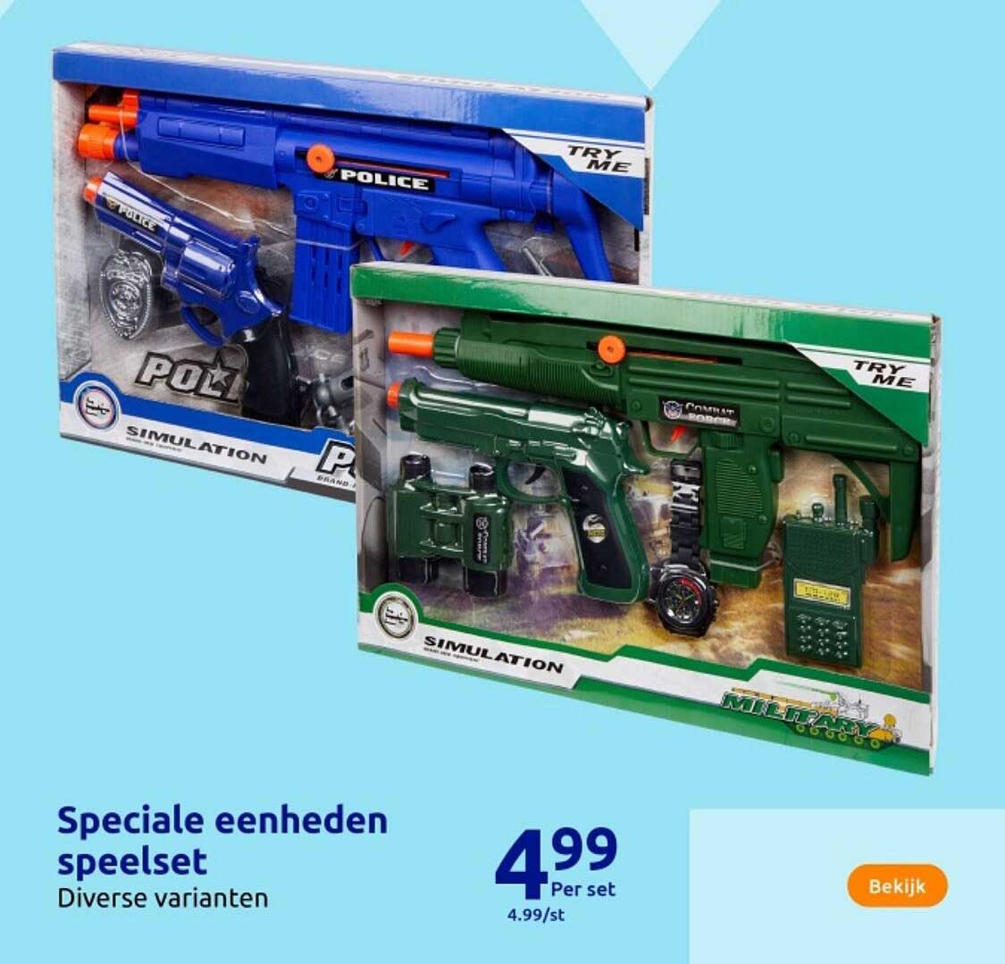 Bekijk nu de Speciale eenheden speelset aanbieding in de Action folder. Deze aanbieding is geldig van 23-10-2024 tot en met 29-10-2024.