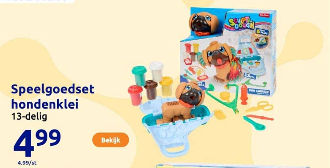 Bekijk nu de Speelgoedset hondenklei 13-delig aanbieding in de Action folder. Deze aanbieding is geldig van 22-10-2025 tot en met 28-10-2025.