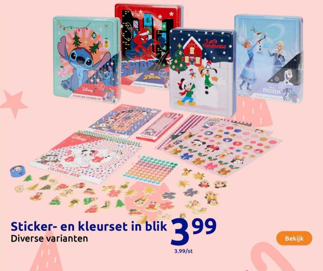 Bekijk nu de Sticker- en kleurset in blik aanbieding in de Action folder. Deze aanbieding is geldig van 15-10-2025 tot en met 21-10-2025.