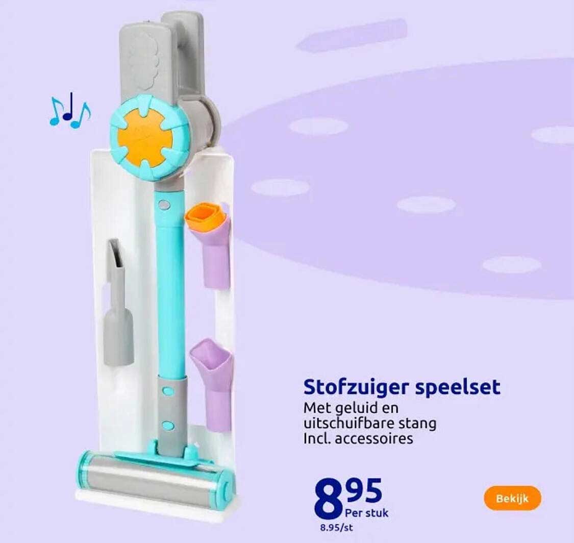 Wil je direct op de hoogte zijn zodra de Stofzuiger Spelset in de aanbieding is? Meld je aan voor onze aanbiedingen-alert. Zo krijg je een melding zodra het product tegen een voordelige prijs beschikbaar is.