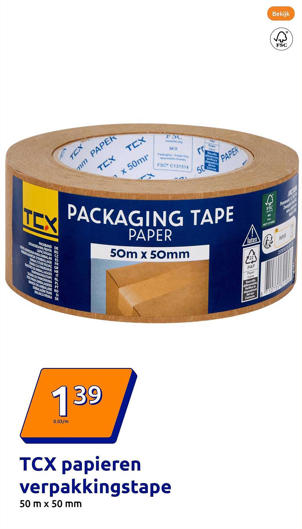 Bekijk nu de TCX papieren verpakkingstape 50 m x 50 mm aanbieding in de Action folder. Deze aanbieding is geldig van 26-03-2025 tot en met 02-04-2025.