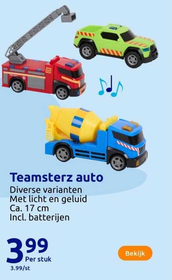 Bekijk de Teamsterz Auto aanbieding bij Action! Deze fantastische aanbieding is nu beschikbaar in de nieuwste Action folder. Profiteer van deze kans en bespaar flink op je aankoop.