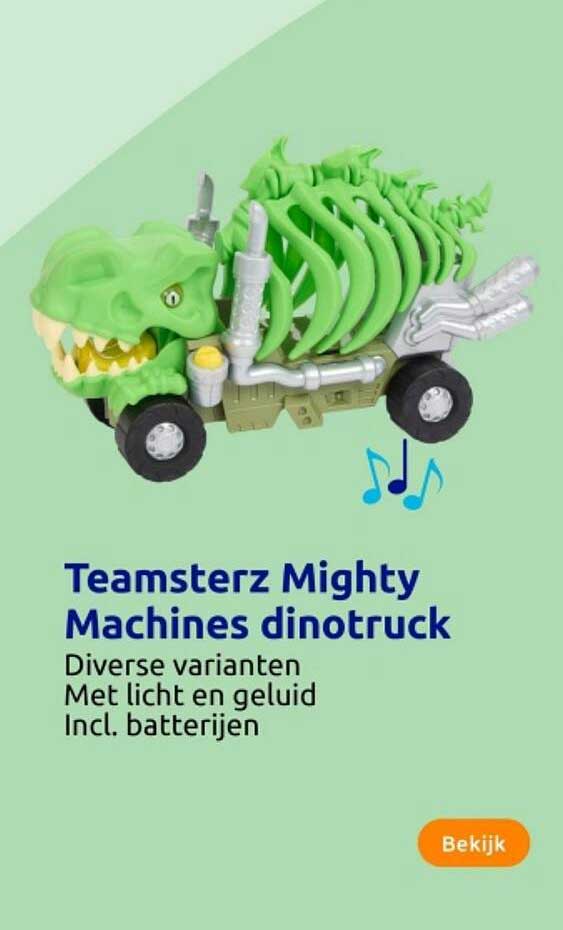 Bekijk nu de Teamsterz Mighty Machines dinotruck aanbieding in de Action folder. Deze aanbieding is geldig van 16-10-2024 tot en met 22-10-2024.