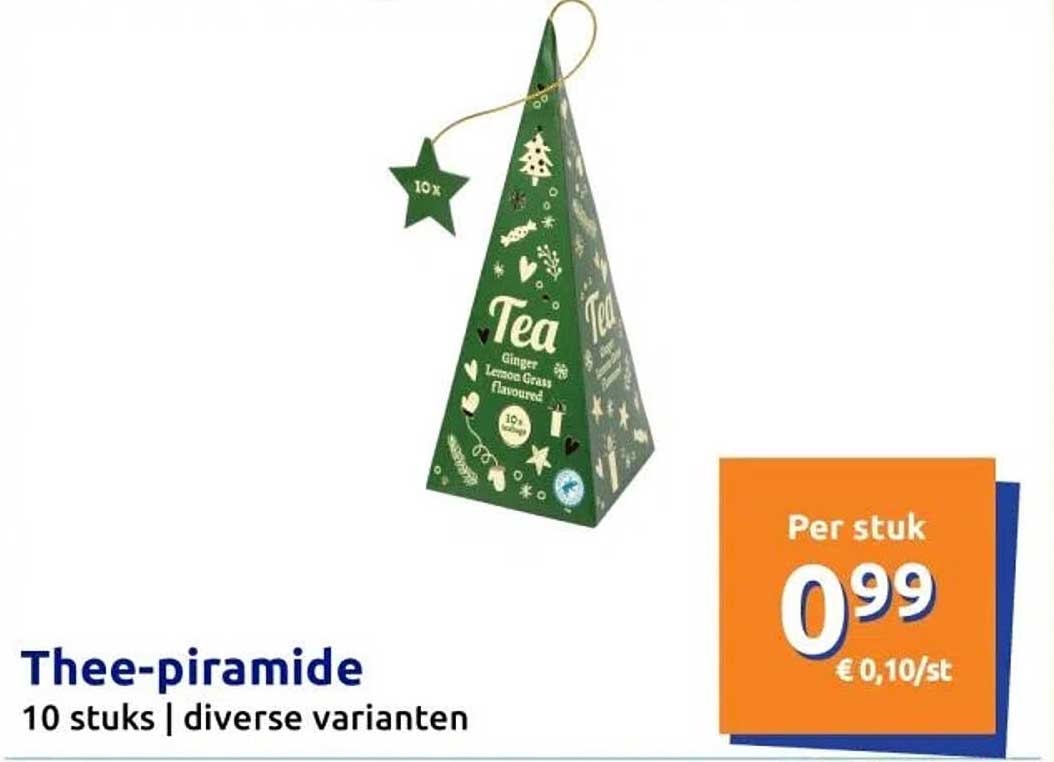 Bekijk nu de Thee-piramide aanbieding in de Action folder. Deze aanbieding is geldig van 30-10-2024 tot en met 30-10-2024.