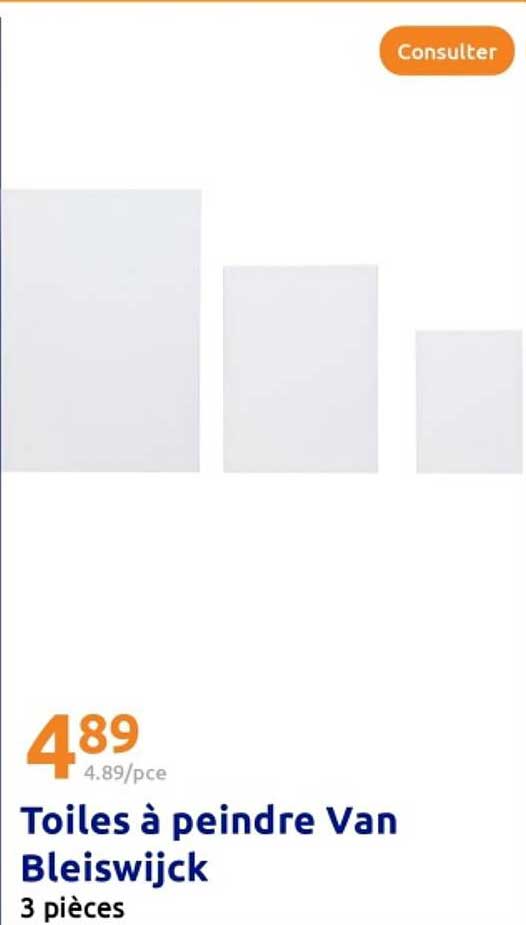 Ontdek de geweldige Toiles À Peindre Van Bleiswijck aanbieding in de nieuwste Action folder. Naast deze aanbieding vind je nog veel meer aantrekkelijke kortingen. Je kunt de Toiles À Peindre Van Bleiswijck eenvoudig online bestellen via de Action website of kopen in een winkel bij jou in de buurt.