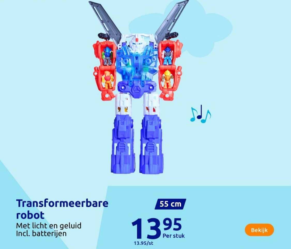 Bekijk de Transformeerbare Robot aanbieding bij Action! Deze fantastische aanbieding is nu beschikbaar in de nieuwste Action folder. Profiteer van deze kans en bespaar flink op je aankoop.