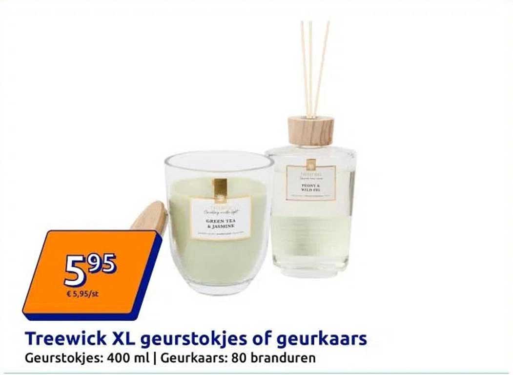 Ontdek de heerlijke geurervaring met de Treewick XL geurstokjes of geurkaars. Deze aanbieding is perfect voor iedereen die graag een aangename ambiance in huis creëert. Met een geur van Green Tea & Jasmijn of Peony & Wild Fig brengt deze aanbieding niet alleen een frisse geur, maar ook een stukje luxe in je woonkamer.