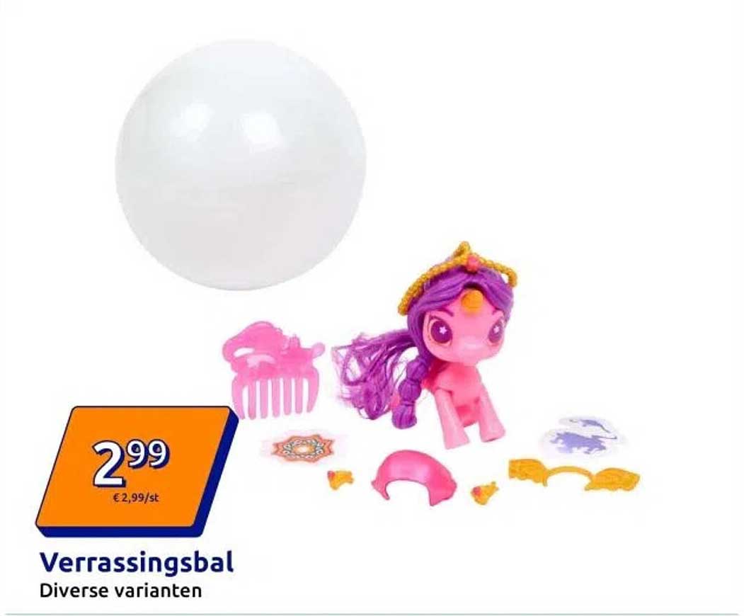 Heb je zin in een verrassing? Dan is deze aanbieding iets voor jou! De Verrassingsbal is een geweldige manier om de fantasie van kinderen te prikkelen en biedt eindeloos speelplezier. Elke bal is uniek en bevat verschillende accessoires en een schattig figuurtje. Perfect voor urenlang speelplezier!