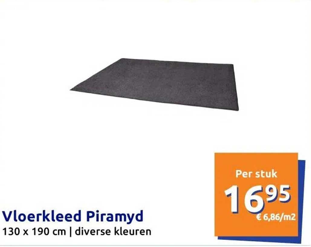 Ontdek de geweldige Vloerkleed Piramyd aanbieding in de nieuwste Action folder. Naast deze aanbieding vind je nog veel meer aantrekkelijke kortingen. Je kunt de Vloerkleed Piramyd eenvoudig online bestellen via de Action website of kopen in een winkel bij jou in de buurt.