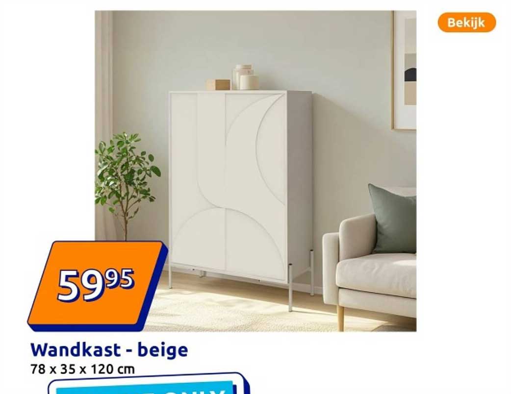 Bekijk nu de Wandkast - beige aanbieding in de Action folder. Deze aanbieding is geldig van 29-10-2025 tot en met 04-11-2025.