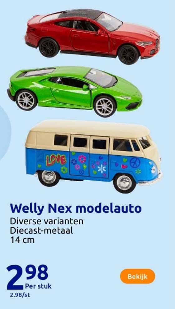 Bekijk de Welly Nex Modelauto aanbieding bij Action! Deze fantastische aanbieding is nu beschikbaar in de nieuwste Action folder. Profiteer van deze kans en bespaar flink op je aankoop.