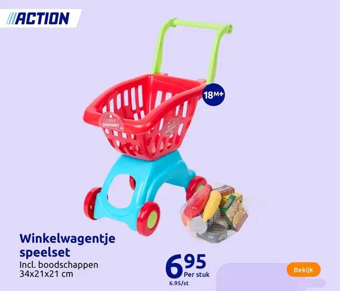Bekijk de Winkelwagentje Speelset aanbieding bij Action! Deze fantastische aanbieding is nu beschikbaar in de nieuwste Action folder. Profiteer van deze kans en bespaar flink op je aankoop.