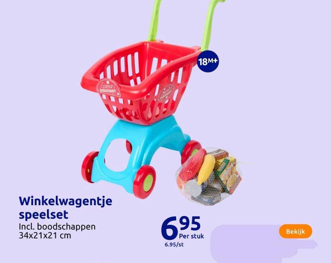 Bekijk de Winkelwagentje Speelset aanbieding bij Action! Deze fantastische aanbieding is nu beschikbaar in de nieuwste Action folder. Profiteer van deze kans en bespaar flink op je aankoop.