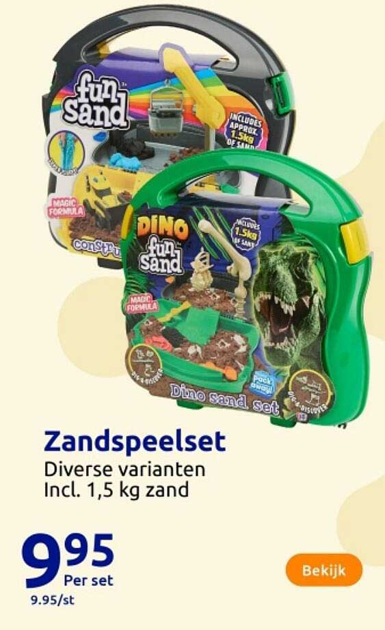 Ontdek de geweldige Zandspelset aanbieding in de nieuwste Action folder. Naast deze aanbieding vind je nog veel meer aantrekkelijke kortingen. Je kunt de Zandspelset eenvoudig online bestellen via de Action website of kopen in een winkel bij jou in de buurt.