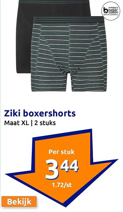 Bekijk de Ziki Boxershorts aanbieding bij Action! Deze fantastische aanbieding is nu beschikbaar in de nieuwste Action folder. Profiteer van deze kans en bespaar flink op je aankoop.