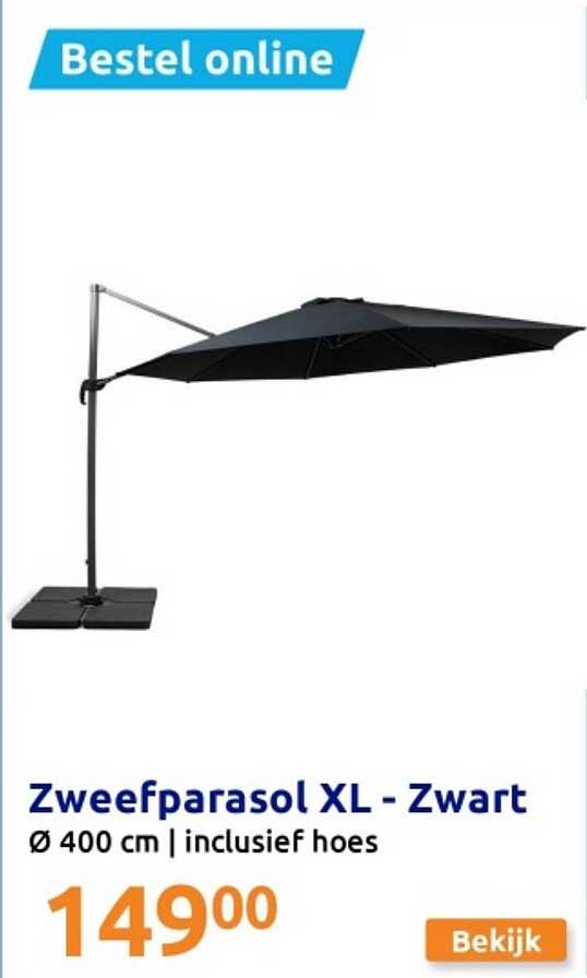 Bekijk de Zweefparasol Xl - Zwart aanbieding bij Action! Deze fantastische aanbieding is nu beschikbaar in de nieuwste Action folder. Profiteer van deze kans en bespaar flink op je aankoop.