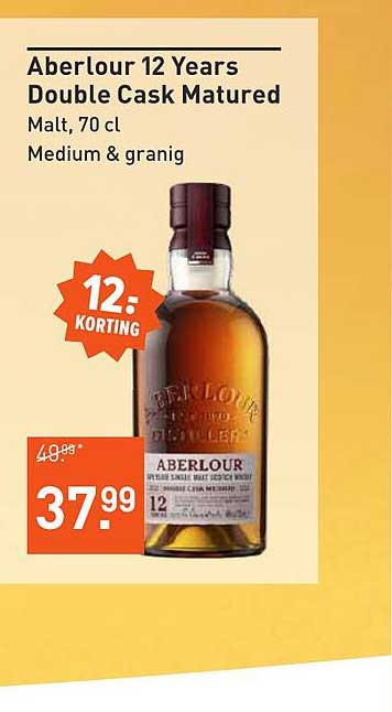 Ontdek de geweldige Aberlour 12 Years Double Cask Matured aanbieding in de nieuwste Albert Heijn folder. Naast deze aanbieding vind je nog veel meer aantrekkelijke kortingen. Je kunt de Aberlour 12 Years Double Cask Matured eenvoudig online bestellen via de Albert Heijn website of kopen in een winkel bij jou in de buurt.