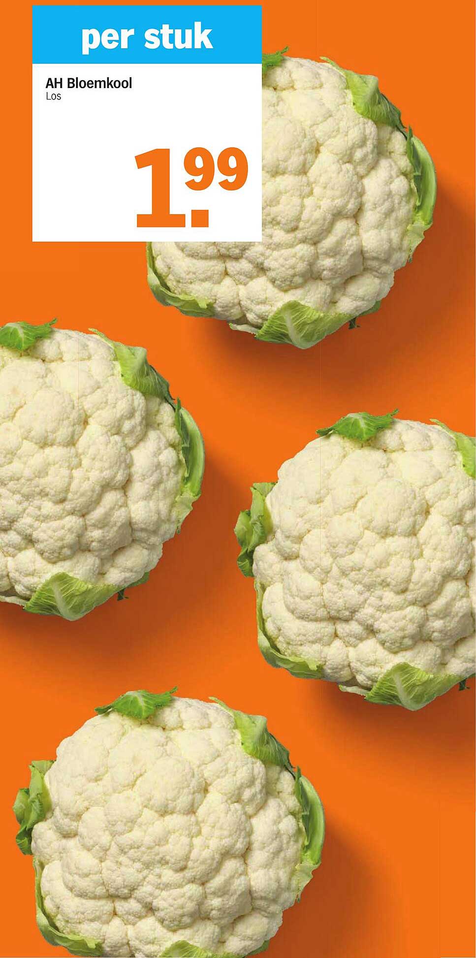 Bekijk de Ah Bloemkool aanbieding bij Albert Heijn! Deze fantastische aanbieding is nu beschikbaar in de nieuwste Albert Heijn folder. Profiteer van deze kans en bespaar flink op je aankoop.