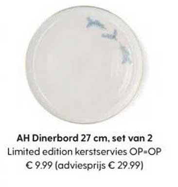 Bekijk de Ah Dinerbord 27 Cm, Set Van 2 aanbieding bij Albert Heijn! Deze fantastische aanbieding is nu beschikbaar in de nieuwste Albert Heijn folder. Profiteer van deze kans en bespaar flink op je aankoop.