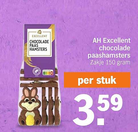 Bekijk nu de AH Excellent chocolade paashamsters aanbieding in de Albert Heijn folder. Deze aanbieding is geldig van 07-04-2025 tot en met 13-04-2025.