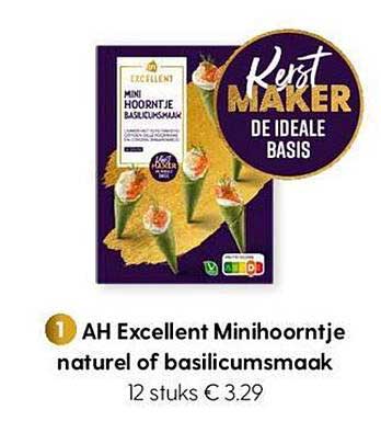 Bekijk nu de AH Excellent Minihoorntje naturel of basilicumsmaken aanbieding in de Albert Heijn folder. Deze aanbieding is geldig van 09-12-2024 tot en met 25-12-2024.