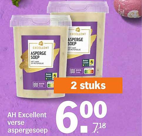 Bekijk nu de AH Excellent verse aspergesoep aanbieding in de Albert Heijn folder. Deze aanbieding is geldig van 14-04-2025 tot en met 20-04-2025.