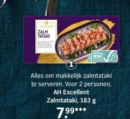 Bekijk de Ah Excellent Zalm Tataki aanbieding bij Albert Heijn! Deze fantastische aanbieding is nu beschikbaar in de nieuwste Albert Heijn folder. Profiteer van deze kans en bespaar flink op je aankoop.