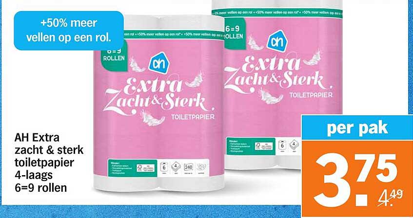 Bekijk de Ah Extra Zacht & Sterk Toiletpapier aanbieding bij Albert Heijn! Deze fantastische aanbieding is nu beschikbaar in de nieuwste Albert Heijn folder. Profiteer van deze kans en bespaar flink op je aankoop.