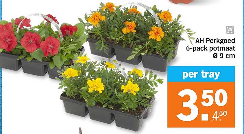 Bekijk nu de AH Perkgoed 6-pack potmaat Ø 9 cm aanbieding in de Albert Heijn folder. Deze aanbieding is geldig van 07-04-2025 tot en met 13-04-2025.