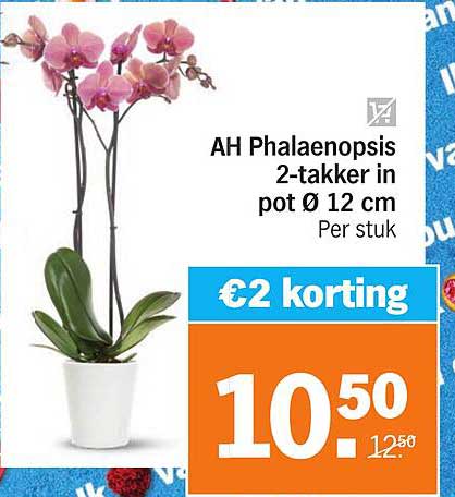 Bekijk de Ah Phalaenopsis 2-Takker In Pot Ø 12 Cm aanbieding bij Albert Heijn! Deze fantastische aanbieding is nu beschikbaar in de nieuwste Albert Heijn folder. Profiteer van deze kans en bespaar flink op je aankoop.