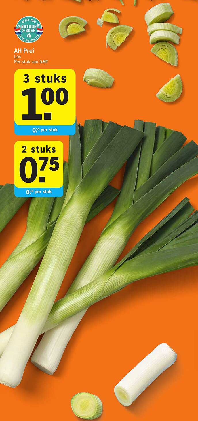 Bekijk de Ah Prei aanbieding bij Albert Heijn! Deze fantastische aanbieding is nu beschikbaar in de nieuwste Albert Heijn folder. Profiteer van deze kans en bespaar flink op je aankoop.