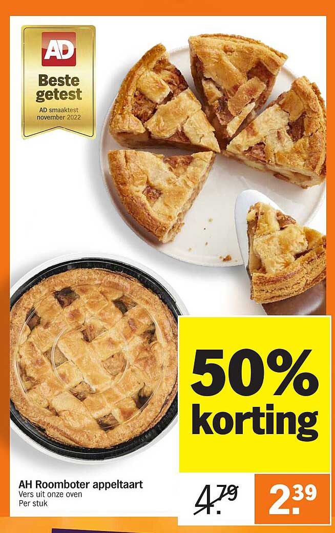 Ontdek de geweldige Ah Roomboter Appeltaart aanbieding in de nieuwste Albert Heijn folder. Naast deze aanbieding vind je nog veel meer aantrekkelijke kortingen. Je kunt de Ah Roomboter Appeltaart eenvoudig online bestellen via de Albert Heijn website of kopen in een winkel bij jou in de buurt.