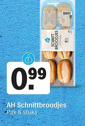 Maak je broodmaaltijden bijzonder met de AH Schnittbroodjes! Deze heerlijke, zachte broodjes zijn perfect voor het samenstellen van een smakelijke lunch of een gezellige barbecue. Met deze aanbieding kun je een pack van 6 stuks kopen voor slechts €0,99! Een perfecte kans om je voorraad aan te vullen tegen een ongeëvenaarde prijs.